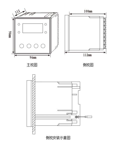 在任何一塊厚度爲1/16英寸(1.5mm)至3/8英寸(9.5mm)的面闆上,開出一個(gè)92mm×92mm的矩形切口。将儀器後部從(cóng)開口正面插入,後部鎖緊即可。