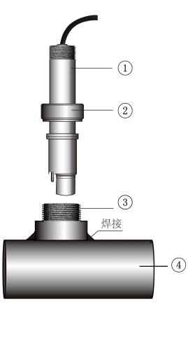 将電(diàn)極的電(diàn)纜依次穿過連接套、安裝管、套管、管蓋(gài)和防水頭;