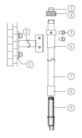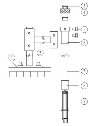 注意:在連接電(diàn)極與連接管時,請旋轉連接管而不要旋轉電(diàn)極,否則電(diàn)極的電(diàn)纜有可能被損壞(huài),同樣在連接安裝管與連接管時請旋轉安裝管。