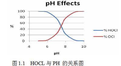 當氯的溶解於(yú)純(chún)水時,它自動水解爲兩種物質:次氯酸HOCL 和次氯酸根CLO-,其溶解性曲線見圖1.1。
