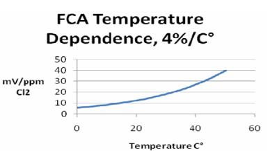 當PH 值在6-9.5 之間時,對樣品自動進行精確(què)補償。控制溶液PH 值,不再需要昂貴的樣品調節系統。溫度變(biàn)化也會影響餘氯的測量,内置的溫度傳感器可自動溫度補償(溫度變(biàn)化與餘氯值關系曲線見下圖)。
