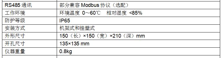儀(yí)表外形尺寸:150(L)×150(W)×210(H)mm