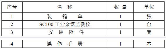 餘氯監測(cè)儀的包裝,内層(céng)是塑料袋進行防潮,中間用泡沫隔震,外部裝用紙箱包裝,裝箱清單如表3-1: