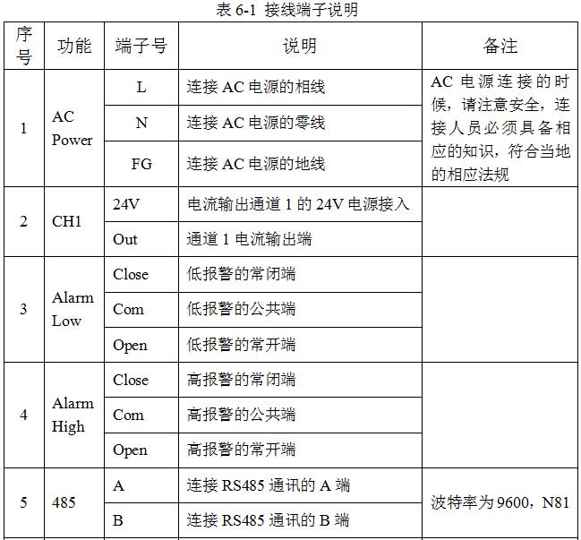 儀表的接線端子如下圖(tú),各端子的意義如下表6-1說(shuō)明: