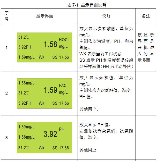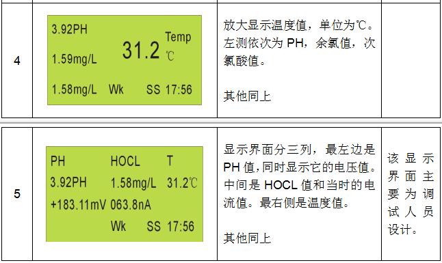 在儀表面闆上,按“Up”鍵和“Down”鍵(或“Left”“Right”)可以分别在5種不同的顯示方式下查看測(cè)量的參(cān)數值,增加用戶的操作靈活性。5種顯示方式如下表7-1說明。