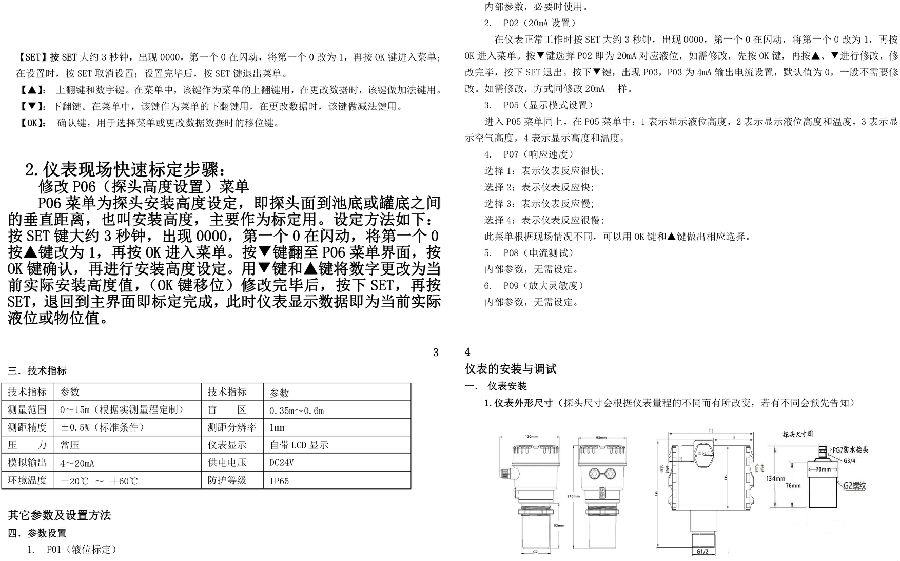 四線制超聲波液位計使用說明書